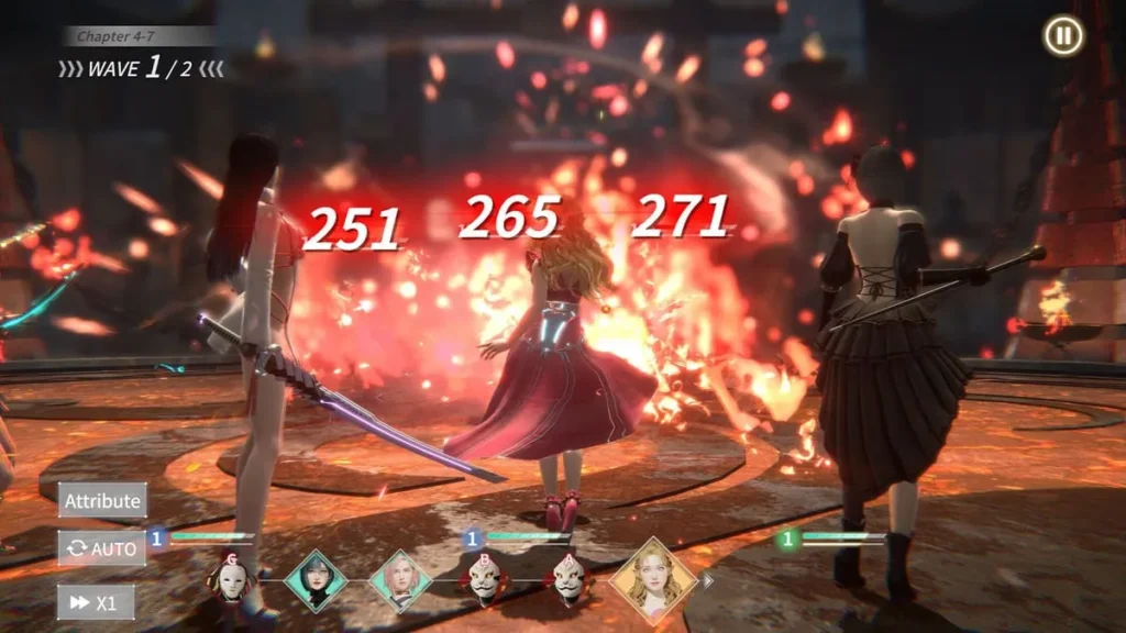 Forget about mindless tapping. Here, you command a party of goddesses, each belonging to a class (Defensive, Offensive, Support, Recovery) and wielding power from an element (Fire, Wood, Water, Earth). The core strategic joy comes from mastering the elemental rock-paper-scissors system. Exploiting weaknesses is key to victory!